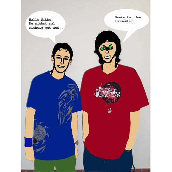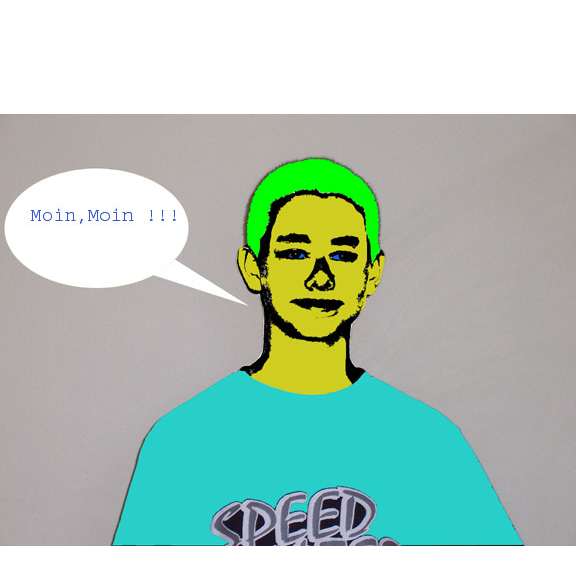 Hier wurden Fotos in Comicstil umgesetzt. Zum Vergleich werden darunter die Original-Fotos als Miniatur gezeigt.