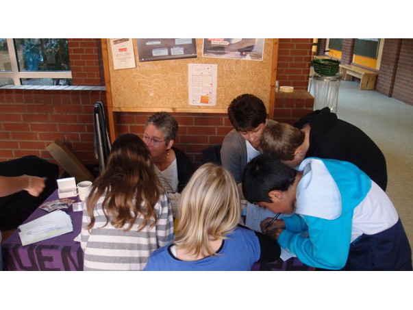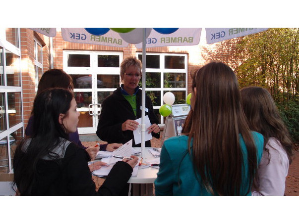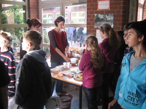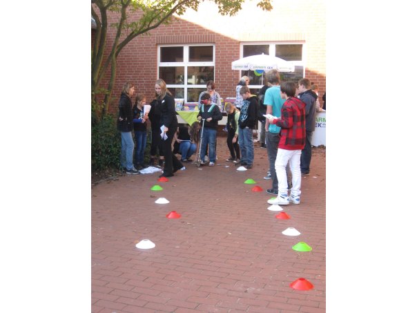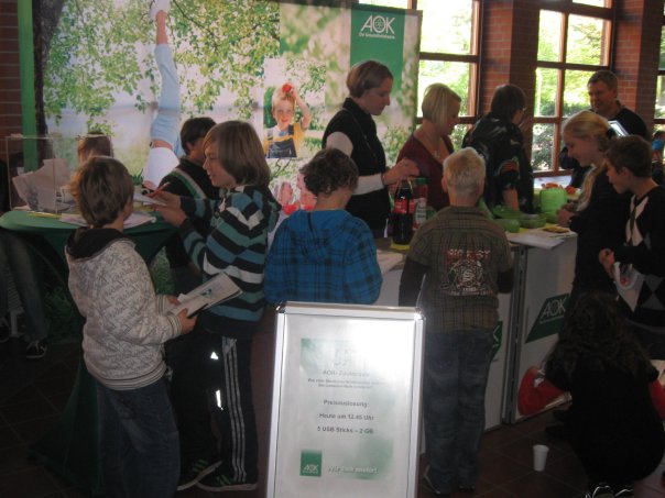 Beim Gesundheitstag am 13.10.2011 gab es eine gesunde Mischung aus Angeboten, die zum Denken anregten (Arbeitsaufträge an Infoständen), die alle Sinne ansprachen (Alkoholbrille) und die schmackhaft waren (gesundes Essen in Form von Obst). Ein herzliches Dankeschön an alle Helfer, seien es die vielen außerschulischen Partner, das Kollegium oder unsere Sozialarbeiterin Frau Wiechers, die für die Organisation zuständig war.