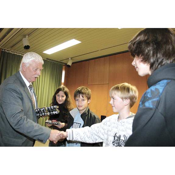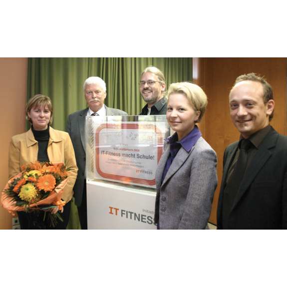 Am Mittwoch, den 5.11. fand in unserer Schule eine Feierstunde anlässlich des Gewinns im Wettbewerb IT-Fitness statt. Anwesend waren Schüler, Elternvertreter, Kollegen, Bürgermeister und Schulleiter der Umgebung sowie Vertreter der Schulverwaltung und unseres Schulträgers, dem Landkreis Soltau-Fallingbostel. Auch Herr Hackelberg war eingeladen, weil unser IT-Projekt unter ihm als Schulleiter begonnen wurde. Frau Verstegen von der Initiative IT-Fitness und Herr Grauschmitt von der Firma Micosoft haben uns eine repräsentative Stele und ein Außenschild mitgebracht, die uns als Gewinnerschule ausweisen. Herr Daube ehrte Frau Krämer, Herrn Welk und vier Schüler der Video-AG für ihre Verdienste im IT-Bereich. Überraschenderweise haben auch die Bürgermeister ein Präsent mitgebracht: Stellvertretend überreichte Samtgemeindebürgermeister Klöpper einen Energiesparkoffer. Den Abschluss bildete ein Sektempfang mit kleinem Imbiss. Zum Zeitungsartikel