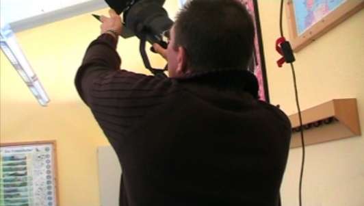 Am Donnerstag, den 2. Oktober war ein Filmteam an unserer Schule zu Gast. Grund für diesen Besuch war natürlich unser Gewinn im Wettbewerb IT-Fitness. Zum Filmteam gehörten ein Kameramann, eine Tonassistentin sowie eine Journalistin. Gleichzeitig waren außerdem ein Fotograf und Frau Verstehen, eine Mitarbeiterin der Initiative IT-Fitness, bei uns. Dabei wurden Filmsequenzen und Fotos erstellt, die dann Zeitungen und Fernsehsendern zur Verfügung gestellt wurden. Auch bei der Pressekonferenz wurden Filmausschnitte präsentiert. Schüler der Video-AG haben einen Teil der Dreharbeiten in einem eigenen kurzen Video festgehalten. Unten ein paar Eindrücke von den Dreharbeiten in Raum 18: