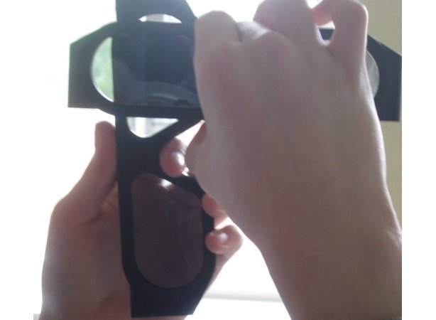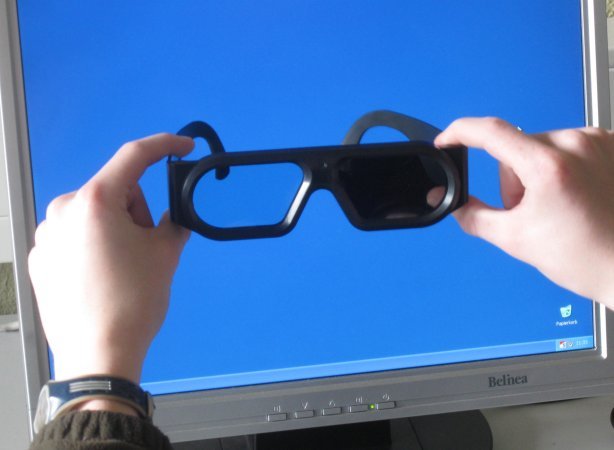 Ein Computerbildschirm strahlt linear polarisiertes Licht aus. Damit kann man zeigen, wie die 3D-Brille funktioniert: hält man die Brille nämlich waagerecht, versperrt das linke Brillenglas die Lichtstrahlen. Hält man sie senkrecht, versperrt das rechte Brillenglas die Strahlen. Wenn man die verschiedenen Gläser gekreuzt im Winkel von 90 ° übereinander hält, sieht man, dass dann jegliche Lichstrahlen versperrt werden.