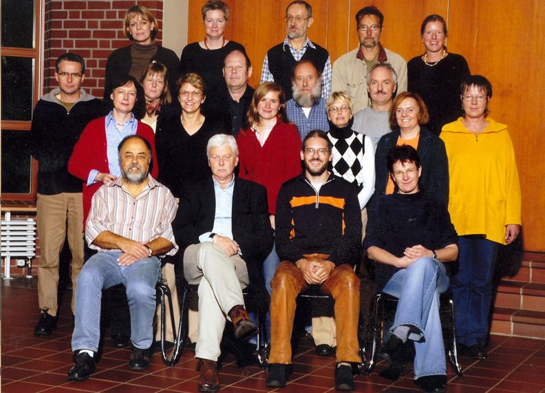 Vordere Reihe von links nach rechts: Hr. Heymel, Hr. Daube (Schulleiter), Hr. Welk, Fr. Seide-Matthies