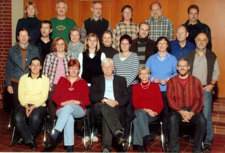 Es fehlen zum Zeitpunkt der Aufnahme: Fr. Osigus, Fr. Sperber, Hr. Welle, Fr. Smutek (Feuerwehrlehrkraft) und Hr. Wolff (Hausmeister)