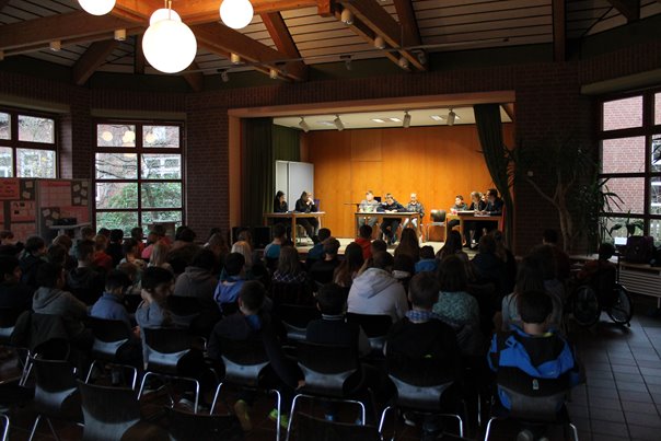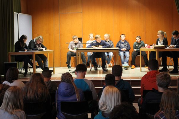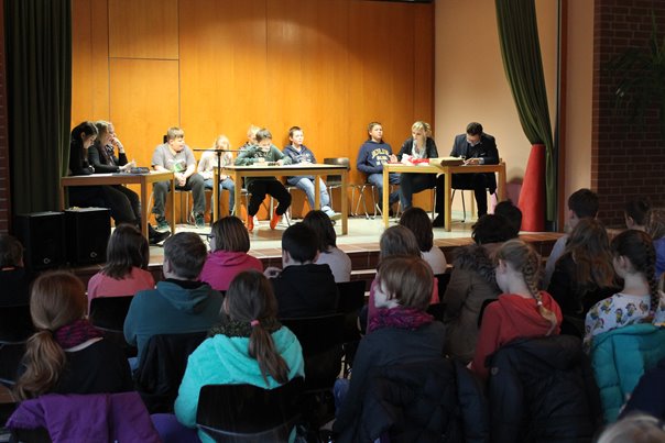 Das bewährte Konzept des letzten Jahres wurde beibehalten, der Lesewettbewerb des Jahres 2015 fand erneut in unserem Forum statt. Auch dieses Mal mussten die Kandidaten sowohl der Jury, als auch ihren Mitschülern aus den Klassen 5 und 6 vorlesen. Die Lesespezialisten waren gut vorbereitet und haben die Aufgabe erstklassig gemeistert. Es war daher nicht leicht herauszufinden, war am besten gelesen hat. Letztlich kürte die Jury die folgenden Sieger: Platz 1 belegte Dennis Sickora, der 2. Platz ging an Kira Wilhelm. Alle Kandidaten erhielten einen Preis als Anerkennung für ihre Leistung.
