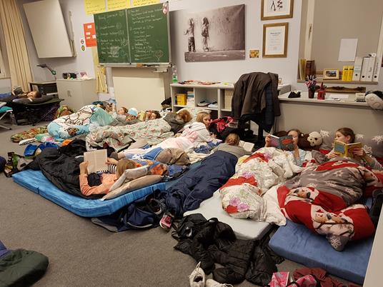Spannend! Es ist spannend und aufregend, in der Schule zu übernachten - gerade für jüngere Schülerinnen und Schüler. Es ist eine gewohnte Umgebung, aber irgendwie ist doch alles anders. Auf dem Programm stehen das Spielen von Spielen und/oder das Lesen von Büchern. Am nächsten Morgen gibt es dann ein gemeinsames Frühstück.