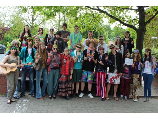 Was sich hinter dem Begriff Mottowoche verbirgt, kann man anhand der Bilder schon ahnen: Gegen Ende des Schuljahres verabreden die Schüler aus Jahrgang 10, eine Woche lang verkleidet zur Schule zu kommen, und zwar jeden Tag unter einem anderen Motto: Das eine Mal kommen sie in Bademantel und Schlafanzug, ein anderes Mal sind sie herausgeputzt wie zu einem Ball. Ob Streber oder Hippies, in dieser Woche kann die verrücktesten Typen treffen. Sehen Sie selbst und wählen Sie ein Austragungsjahr: