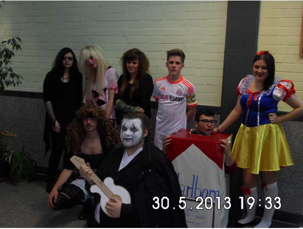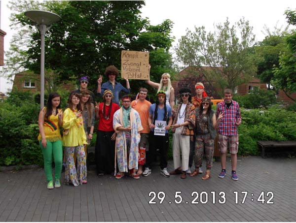 Was sich hinter dem Begriff Mottowoche verbirgt, kann man anhand der Bilder schon ahnen: Gegen Ende des Schuljahres verabreden die Schüler aus Jahrgang 10, eine Woche lang verkleidet zur Schule zu kommen, und zwar jeden Tag unter einem anderen Motto: Das eine Mal kommen sie in Bademantel und Schlafanzug, ein anderes Mal sind sie herausgeputzt wie zu einem Ball. Ob Streber oder Hippies, in dieser Woche kann die verrücktesten Typen treffen. Sehen Sie selbst und wählen Sie ein Austragungsjahr: