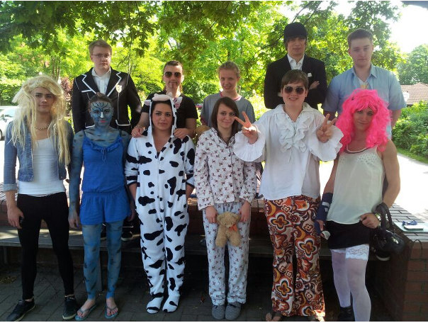 Was sich hinter dem Begriff Mottowoche verbirgt, kann man anhand der Bilder schon ahnen: Gegen Ende des Schuljahres verabreden die Schüler aus Jahrgang 10, eine Woche lang verkleidet zur Schule zu kommen, und zwar jeden Tag unter einem anderen Motto: Das eine Mal kommen sie in Bademantel und Schlafanzug, ein anderes Mal sind sie herausgeputzt wie zu einem Ball. Ob Streber oder Hippies, in dieser Woche kann die verrücktesten Typen treffen. Sehen Sie selbst und wählen Sie ein Austragungsjahr: