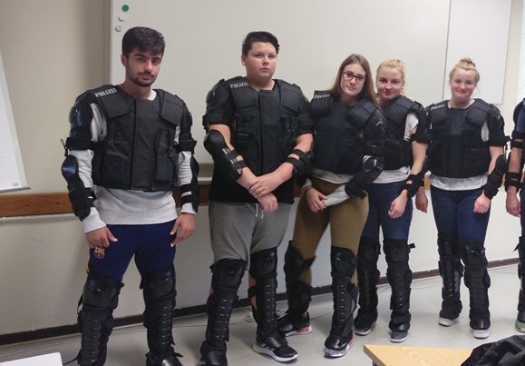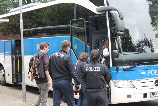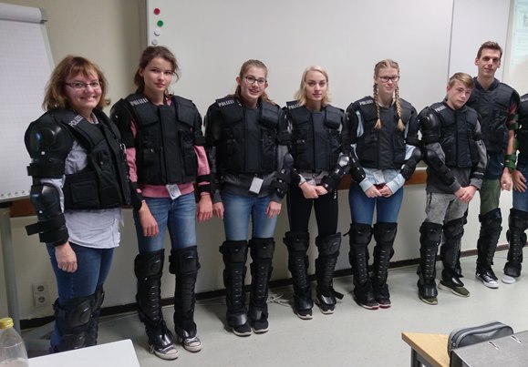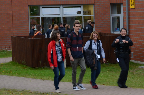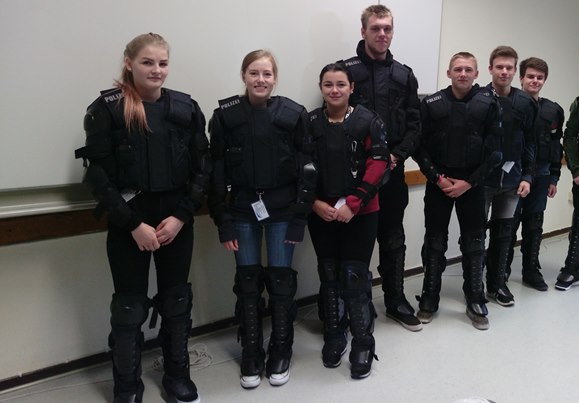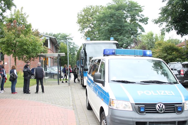 Auf Initiative von Frau Lippe, die bei der Bundespolizei tätig ist, kam ein Besuch der zehnten Klassen im Aus- und Fortbildungszentrum in Walsrode zustande. Am 12.9. war es soweit: Die Jugendlichen wurden morgens um 8.00 Uhr mit einem Bus der Bundespolizei abgeholt. Manch einer machte große Augen, als er vor unserer Haustür die beiden Polizeifahrzeuge mit angeschaltetem Blaulicht sah - was da wohl los ist? Nur Gutes! Die Schülerinnen und Schülern absolvierten dann in Walsrode mehrere Stationen. In Sechsergruppen wurden sie von Auszubildenden der Bundespolizei begleitet, die ihnen alle Fragen auf Augenhöhe beantworteten. Auch Sport gehörte zum Programm: Wäre ich fit genug, um die Aufnahmeprüfung zu bestehen? Der Tag war für alle Teilnehmer ein Gewinn. Unser Dank gilt von Frau Lippe und allen anderen Beteiligten, dass dieser Besuch zustande kam.