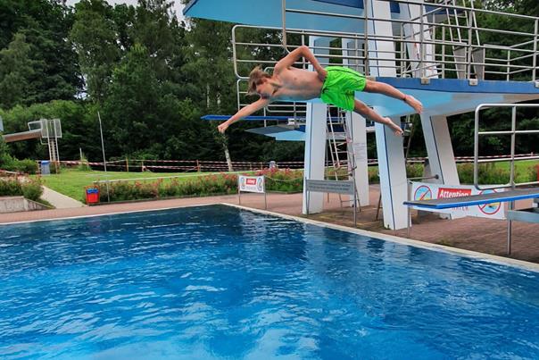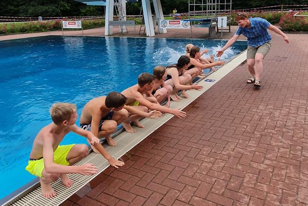 Pack die Badehose ein! Eines der Angebote der Projektwoche 2021 war ein Schwimmkurs für die Schülerinnen und Schüler der Jahrgänge 5 und 6. 18 motivierte Schwimmwillige mit unterschiedlichsten Schwimmkenntnissen fuhren zusammen mit Frau Pflanz und Frau Mohr eine Woche lang in das Freibad in Bad Fallingbostel. Das Wetter spielte meistens mit, nur der Mittwoch war grau und regnerisch, so dass unsere Schwimmerinnen und Schwimmer zuerst gar nicht ins Wasser wollten. Dann die Überraschung: Ist es draußen kalt, erscheint das Wasser warm – und schon waren alle drin.