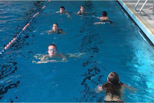 Im Schwimmunterricht erlernen die Schüler/innen zuerst Brust- und Rückenschwimmen. Hier wird besonders auf Arm- und Beinschlag, Körperposition und Wasserlage geachtet. Auch der Startsprung vom Startblock und Wendetechniken werden richtig geübt. Dabei erlernen und erweitern die Schüler/innen die Grundfertigkeiten wie Tauchen (weit oder tief), Springen und Gleiten. Mit verschiedenen Hilfsmitteln wie z. B. Flossen, Reifen, Schwimmbrett oder Pullboy haben die Mädchen und Jungen die Möglichkeit, ihre Technik zu verbessern und dabei neue Bewegungserfahrungen zu sammeln.