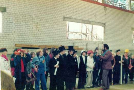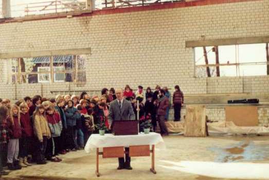 Schulleiter Groffmann hält eine Rede beim Richtfest