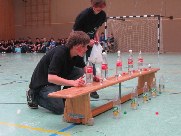 Beim Schülerstreich 2010 mussten sich die Lehrer in mehreren Einzel-Wettkämpfen mit den Schülern messen. Die Disziplinen waren abenteuerlich, sie reichten vom "Tischtennisbälle-ins-Glas-Pusten" bis zum "Klopapier-Ziel-Ausrollen". Am Ende der regulären Wettkämpfe stand es unentschieden, so dass ein Stechen die Entscheidung bringen musste - zugunsten der Schüler.
