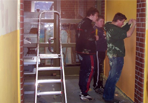 Bevor die Praxistage an den Berufsbildenden Schulen Walsrode 2011 schulübergreifend geregelt worden sind, veranstalteten wir für unsere achten Hauptschulklassen jährlich Projekttage unter dem Motto "Ich werde Maler". Diese Projekttage wurden in Kooperation mit dem Malerbetrieb Rose aus Hademstorf und dem BGJ Farbe der BBS Walsrode durchgeführt. Im Zentrum der Arbeit standen sowohl handwerkliche Malerarbeiten als auch eine künstlerische Betätigung. Als positiven Nebeneffekt konnten sich alle über die neu gestalteten Räume an unserer Schule freuen. Zum Zeitungsartikel aus dem Jahre 2008