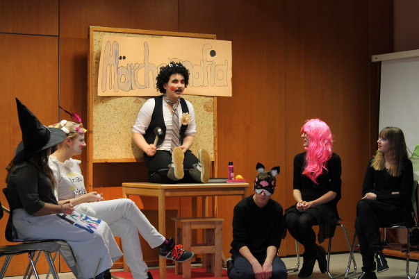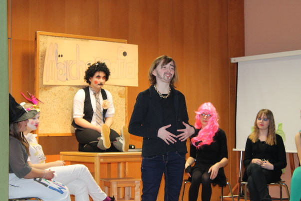 "Die Märchenmafia" ist ein lustiges Theaterstück, in dem es viel Wortwitz und Anspielungen auf bekannte Märchen gibt. Die Hauptfiguren machen sich, ähnlich wie Hänsel und Gretel, auf eine Reise ins Ungewisse, weil sie Stress mit ihren Eltern haben. Wer genau hinguckt, erkennt auf den Bildern unten Märchenfiguren wie z. B. den Froschkönig und Frau Holle. Im Januar / Februar 2014 führten die Akteure das Stück vor ihren Mitschülern aus der Oberschule sowie vor Dritt- und Viertklässlern der Grundschule Hodenhagen auf.