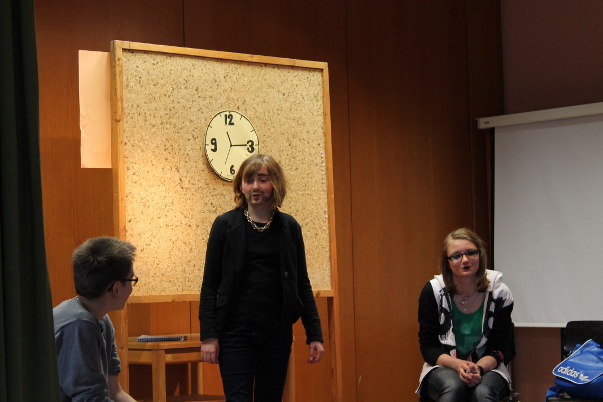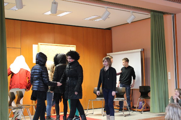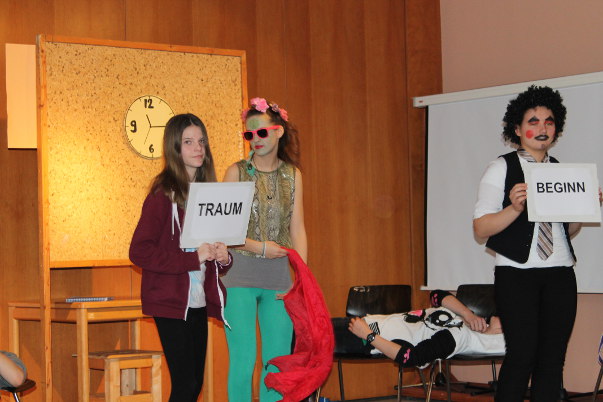 Von 2007 bis 2014 wurde an unserer Schule eine Theater-AG angeboten. Verschiedene Lehrkräfte und Mitarbeiterinnen hatten die Leitung inne, u. a. Frau Klebig, Frau Seide-Matthies, Frau Köhler und Frau Goodman . Einmal pro Woche trafen sich die teilnehmenden Schülerinnen und Schüler, um zwei Schulstunden lang Texte zu lernen, Kulissen zu bauen und Szenen zu proben. Die Ergebnisse gab es dann in Form von Aufführungen zu sehen. Bitte wählen Sie eines der folgenden Stücke: