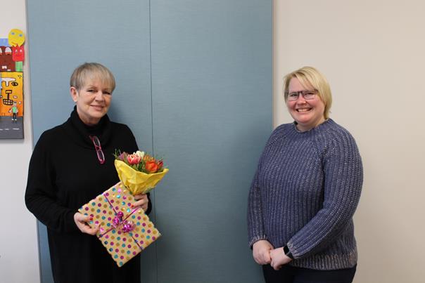 Carola Ullrich stammt ursprünglich aus Oldenburg und hat dort die Fächer Deutsch und Hauswirtschaft studiert. Seit 1991 war Frau Ullrich Lehrerin mit Leib und Seele in Hodenhagen. Sie initiierte Projekte und brachte sich als engagierte Klassenlehrerin ein. Zu ihren Schützlingen hatte Frau Ullrich immer einen „guten Draht“. Frau Ullrichs Wunsch, keine langen Lobreden zu erhalten und keine große Abschiedsfeier zu veranstalten, kam das Kollegium nach und so fand die Verabschiedung in kleinem Rahmen statt. Schulleiter Maik Welk betonte, dass Ullrich stets offen für Neuerungen war und bereitwillig zusätzliche Aufgaben übernahm – beispielsweise leitete sie bis zuletzt den Betrieb des Kiosks durch die Schülerfirma und baute an der Schule das Unterrichtsfach Gesundheit und Soziales auf. „Immer, wenn Not am Mann war, konnten wir uns auf dich verlassen“, sagte Herr Welk und sprach Frau Ullrich seinen Dank aus. Personalrätin Maike Jonsky überreichte Frau Ullrich zum Abschied ein Geschenk als Erinnerung an die Zeit in Hodenhagen: ein Fotobuch mit Stationen aus Frau Ullrichs Lehrtätigkeit.