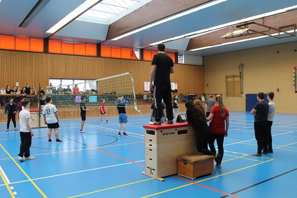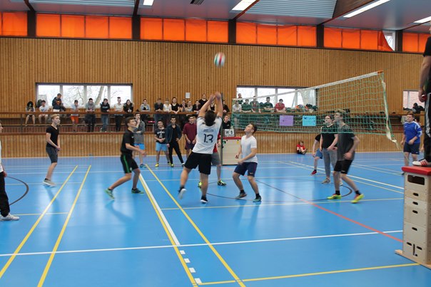 Im Schuljahr 2012/13 haben wir erstmalig ein schulinternes Volleyballturnier für die Jahrgänge 9 und 10 veranstaltet. Seitdem findet es - mit Ausnahme der Coronazeit - jedes Jahr statt. Damit steht das Volleyballturnier in einer Reihe mit dem Völkerballturnier für die Jahrgänge 5/6 und dem Streetballturnier für die Jahrgänge 7/8.